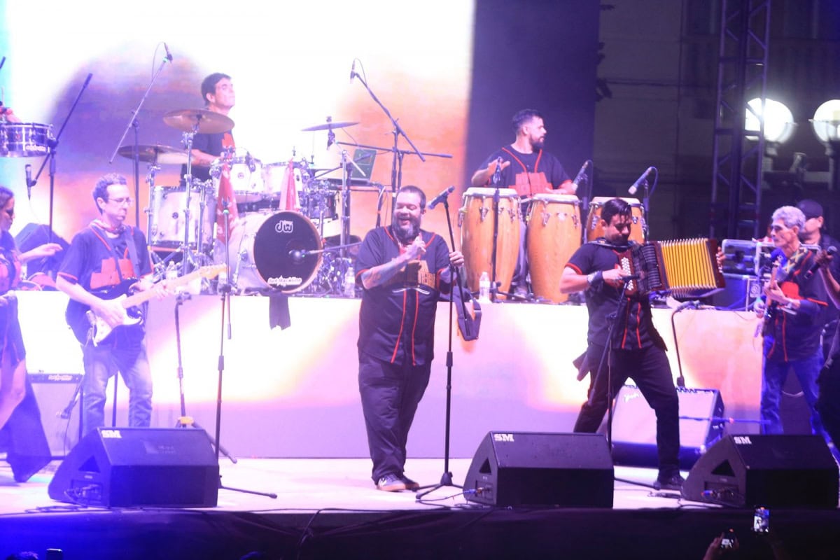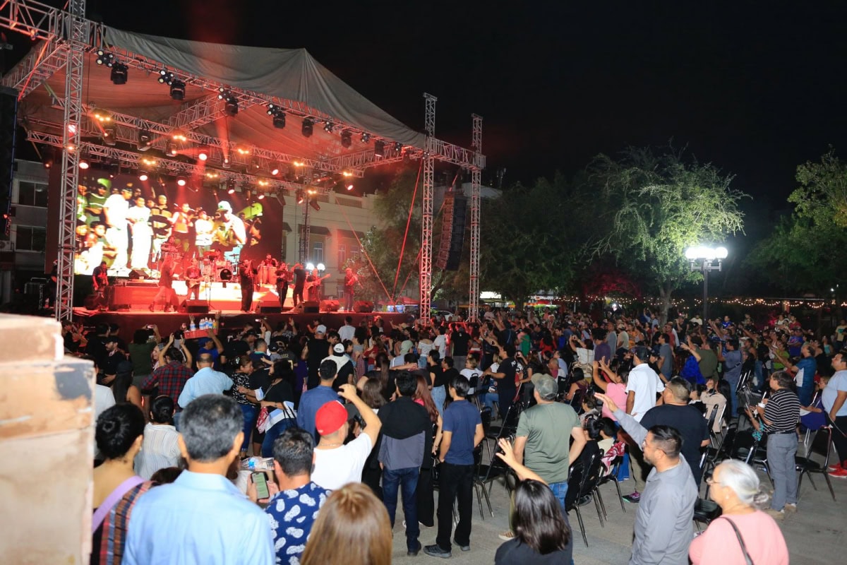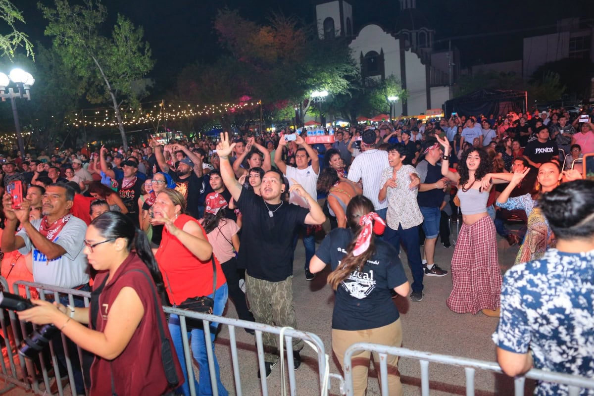 Simultáneamente, en la Plaza Juárez, el ritmo se apoderó de la noche con la presentación de La Ronda Machetera, agrupación nacida de la fusión de La Ronda Bogotá y Pato Machete, que rindió homenaje al inolvidable Celso Piña con un vibrante espectáculo de cumbia y hip hop.