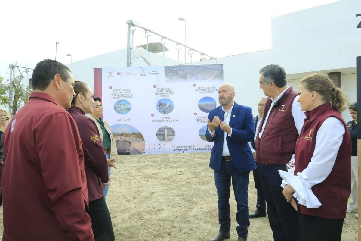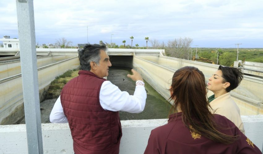 Acompañado por la presidenta municipal, Carmen Lilia Canturosas, el gobernador escuchó la explicación del secretario de Recursos Hidráulicos, Raúl Quiroga Álvarez, quien presentó los avances de la obra, que junto con la Planta Oradel y la Planta Norponiente logrará tratar el 100 por ciento de las aguas residuales de la ciudad, para colaborar en el saneamiento del río Bravo.