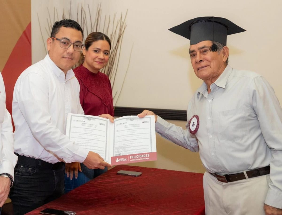 Altamira, Tamaulipas.– Como resultado de la suma de voluntades entre el Instituto Tamaulipeco de Educación para Adultos (ITEA) y el Sistema DIF Altamira, se entregaron certificados de educación básica a adultos mayores que laboran como empacadores voluntarios en una tienda de este municipio.