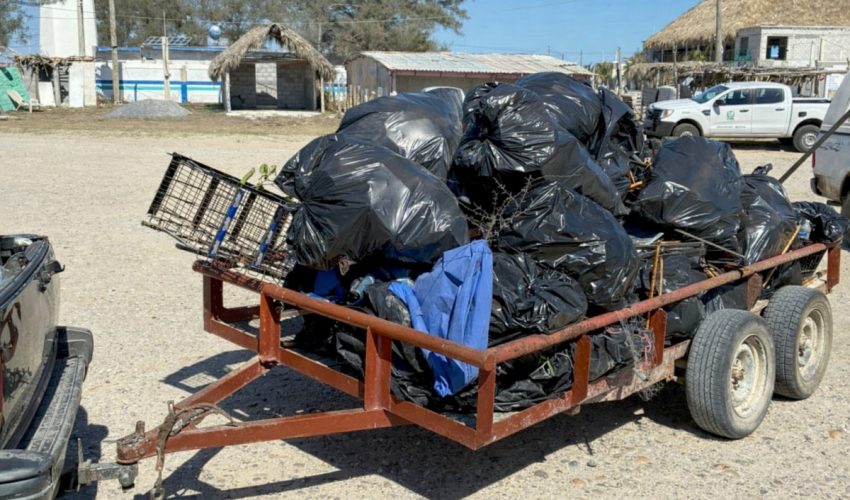 Las cuadrillas lograron limpiar aproximadamente cinco kilómetros de playa, recolectando cerca de mil 800 kilogramos de residuos. Entre los materiales retirados se encontraron estructuras metálicas de toldos abandonados, plástico PET, vidrio y materia orgánica, desechos que afectan directamente a la fauna silvestre y representan riesgos para la salud humana.