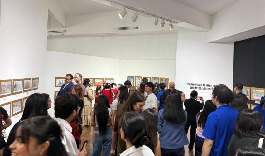 El director general del ITM, Juan José Rodríguez Alvarado, destacó que la muestra reúne obras de niñas y niños que actualmente residen en distintos puntos de México, Estados Unidos, Canadá y Europa, así como de quienes permanecen en sus comunidades y experimentan una migración fragmentada marcada por la ausencia cotidiana que deja la partida de un ser querido.
