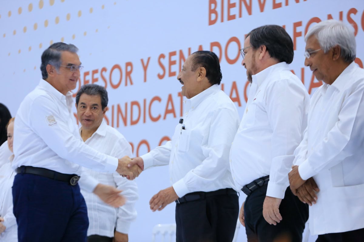 “Fue posible porque un hombre demócrata, valiente, libertario, como el gobernador Américo Villarreal, la sancionó y concluyó su proceso legislativo firmando el decreto y publicándolo en el periódico del Estado. Gracias, señor gobernador, a nombre de todas y todos los trabajadores al servicio del Estado, de las maestras y los maestros y, desde luego, del senador Alfonso Cepeda Salas”, mencionó.