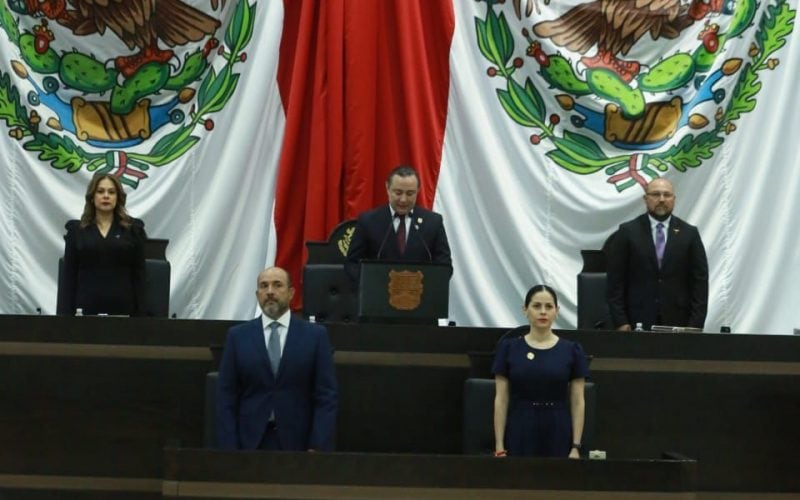 “Un gobierno que trabaja por la seguridad, la paz y el desarrollo con bienestar dentro del estado de derecho; un gobierno que coloca en el centro de su acción a la persona humana”, expresó el representante del titular del Poder Ejecutivo al hacer entrega del documento al presidente de la Mesa Directiva, diputado Sergio Arturo Ojeda Castillo.