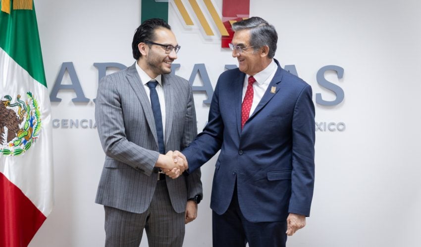 Ciudad de México.- El gobernador de Tamaulipas, Américo Villarreal Anaya, presentó al nuevo titular de la Agencia Nacional de Aduanas de México, Héctor Alonso Romero Gutiérrez, los proyectos estratégicos como el Puerto Interior de Tamaulipas y la Administración Portuaria Integral de Matamoros, que siguen avanzando de la mano del Gobierno de México, que encabeza la presidenta Claudia Sheinbaum, para generar desarrollo y bienestar para las y los tamaulipecos.