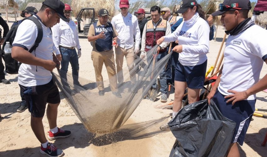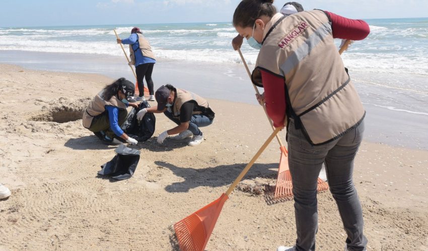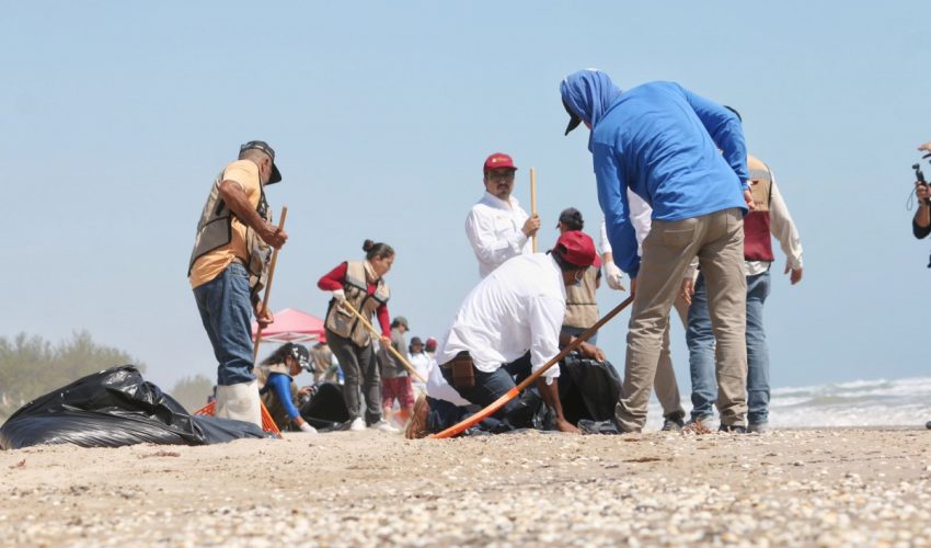 Las labores se realizan de manera coordinada con brigadas de Empleo Temporal de la SEDUMA, integradas por habitantes de La Pesca capacitados por la Procuraduría Federal de Protección al Ambiente (PROFEPA) en el manejo de residuos de hidrocarburo. A estas acciones se suman personal de la Secretaría de Bienestar y elementos de la Secretaría de Marina, quienes llevaron a cabo un barrido manual, para retirar el material detectado.