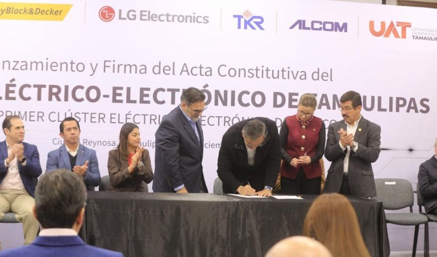 Durante la ceremonia, también quedaron formalmente registrados como miembros fundadores del Clúster Eléctrico–Electrónico de Tamaulipas: Abraham Walter Rico Murrieta, gerente senior de Comercio Exterior y representante legal de LG Electronics Reynosa; Sergio Antonio Ruiz Leal, gerente de Operaciones de TKR de México; Víctor Javier Arellano Valadez, representante de Alcom Electrónicos de México; Dámaso Leonardo Anaya Alvarado, rector de la Universidad Autónoma de Tamaulipas; y Edgar Garza Hernández, rector de la Universidad Tecnológica de Tamaulipas Norte.